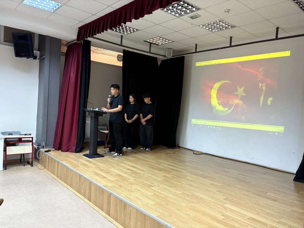 Program, şehitlerimiz için yapılan saygı duruşu ve İstiklal Marşı ile başladı. Ardından öğretmenlerimiz ve öğrencilerimiz, 15 Temmuz gecesinde milletimizin gösterdiği cesareti, vatan sevgisini ve bağımsızlık mücadelesini anlatan konuşmalar, şiirler ve sunumlar gerçekleştirdi.